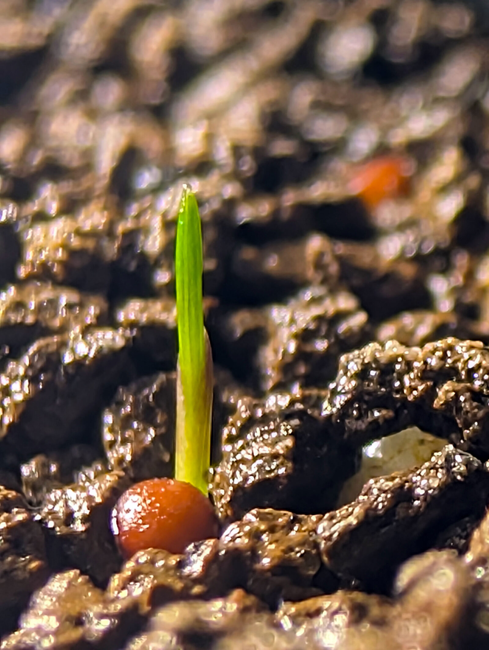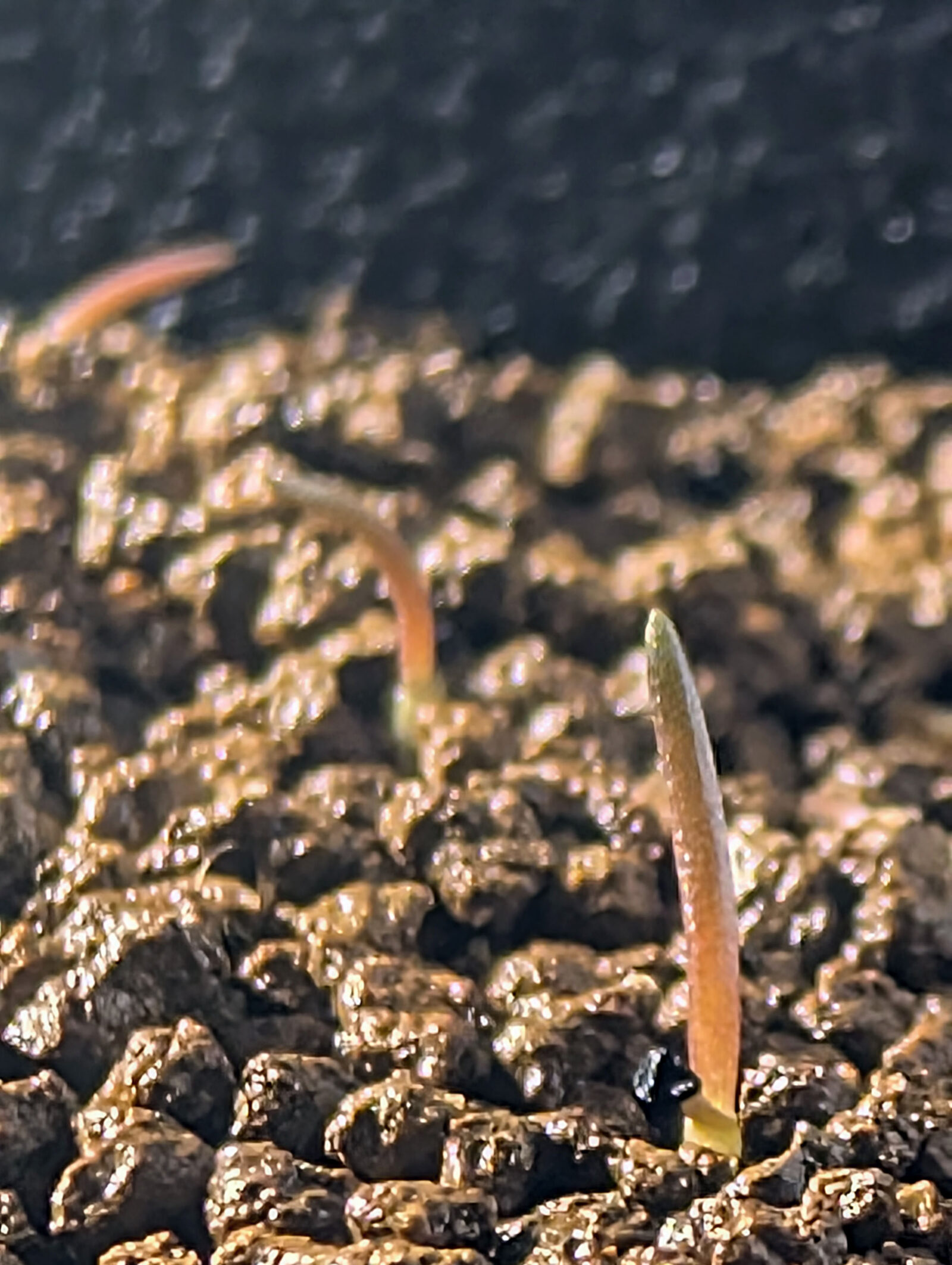 まずは報告。 根っこが見えてた3粒、ちゃんと芽が出ました。この瞬間の気持ち、だいたい「当たり馬券を握りしめて改札を出る人」です。静かにガッツポーズ。 しかも、まだパンパンで“生きてそう”な種が残ってる。これ、たぶんまだ来る。来るぞ……!(期待大... ハドラウマウチカ