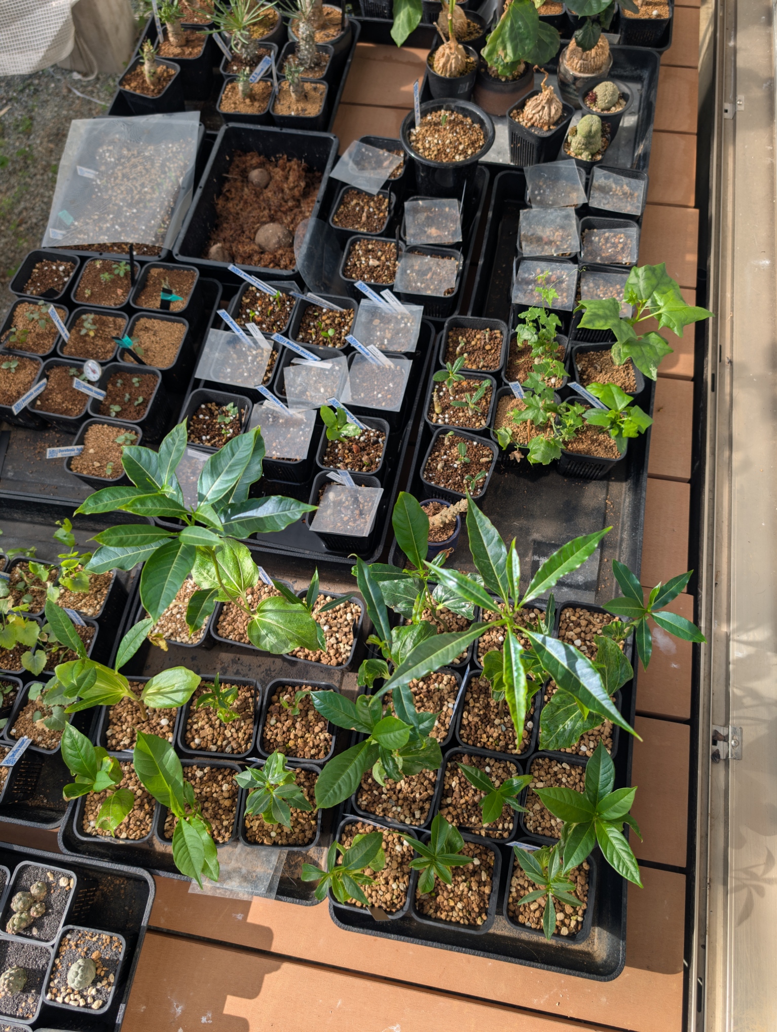 3台並べて実生苗を朝外に出して、夜取り込んでいます。