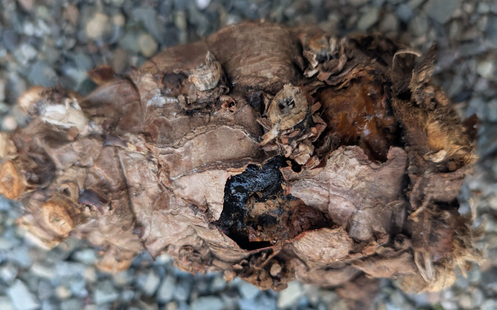 中は真っ黒で、まるで“内部から食い尽くされた”ような状態に……。