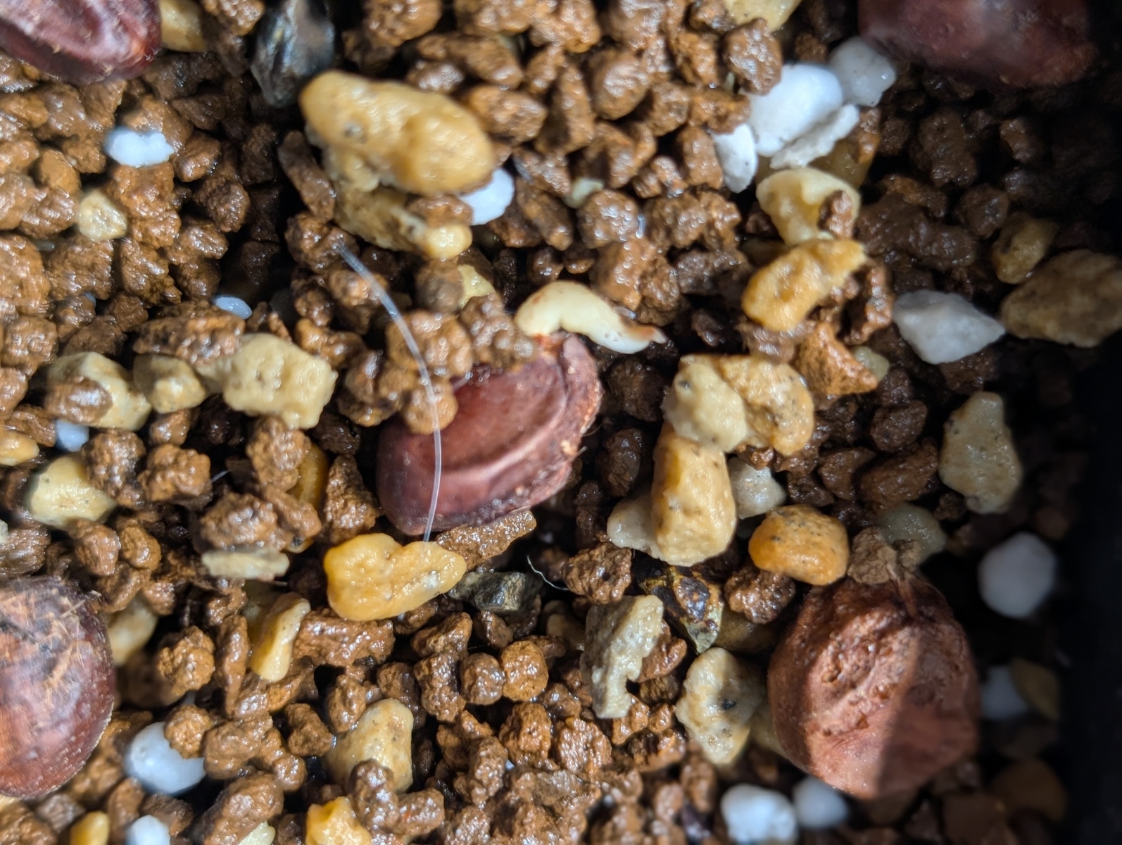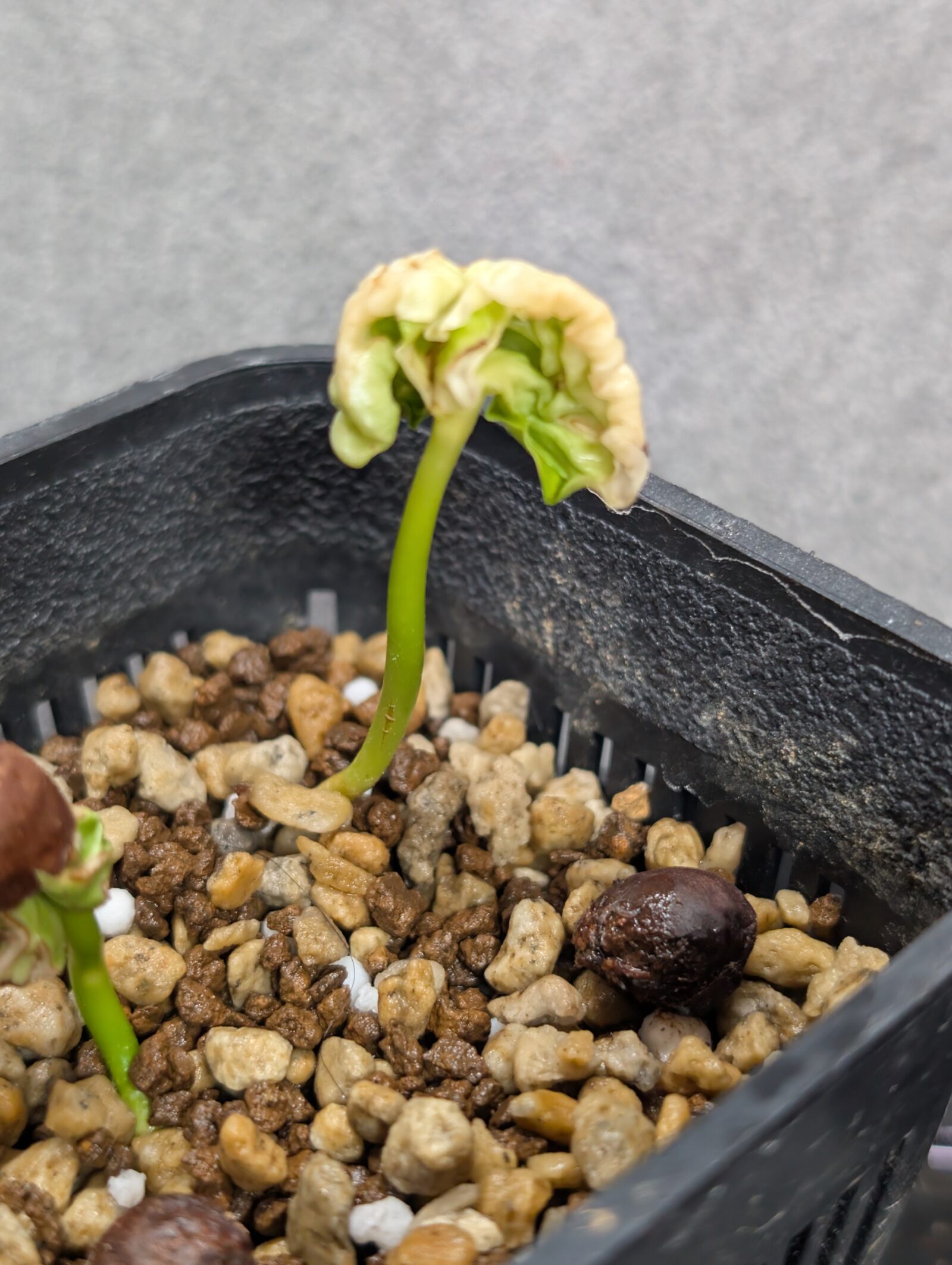 • 発芽直後の双葉がもやし色→早急に光を当てて育成開始