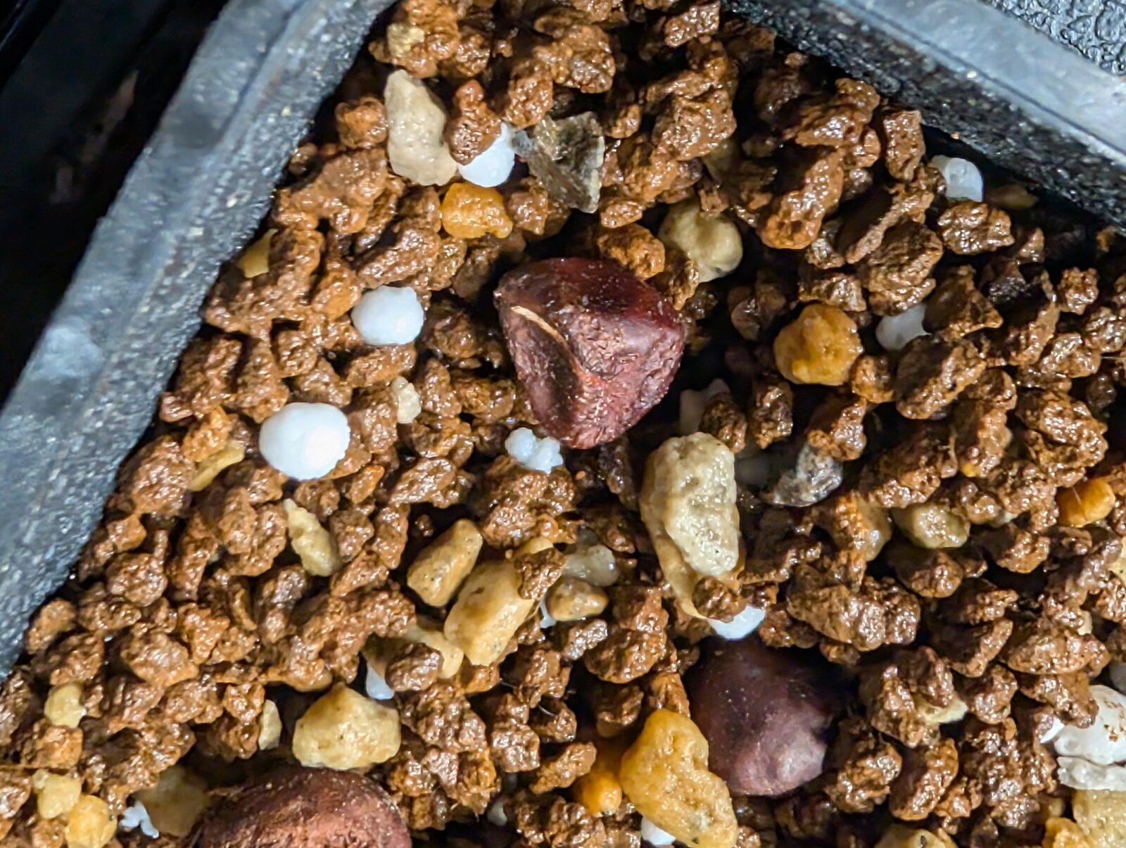 • よく排水する培地:例)硬質赤玉小粒 6〜7 + 川砂/パーライト 3〜4。