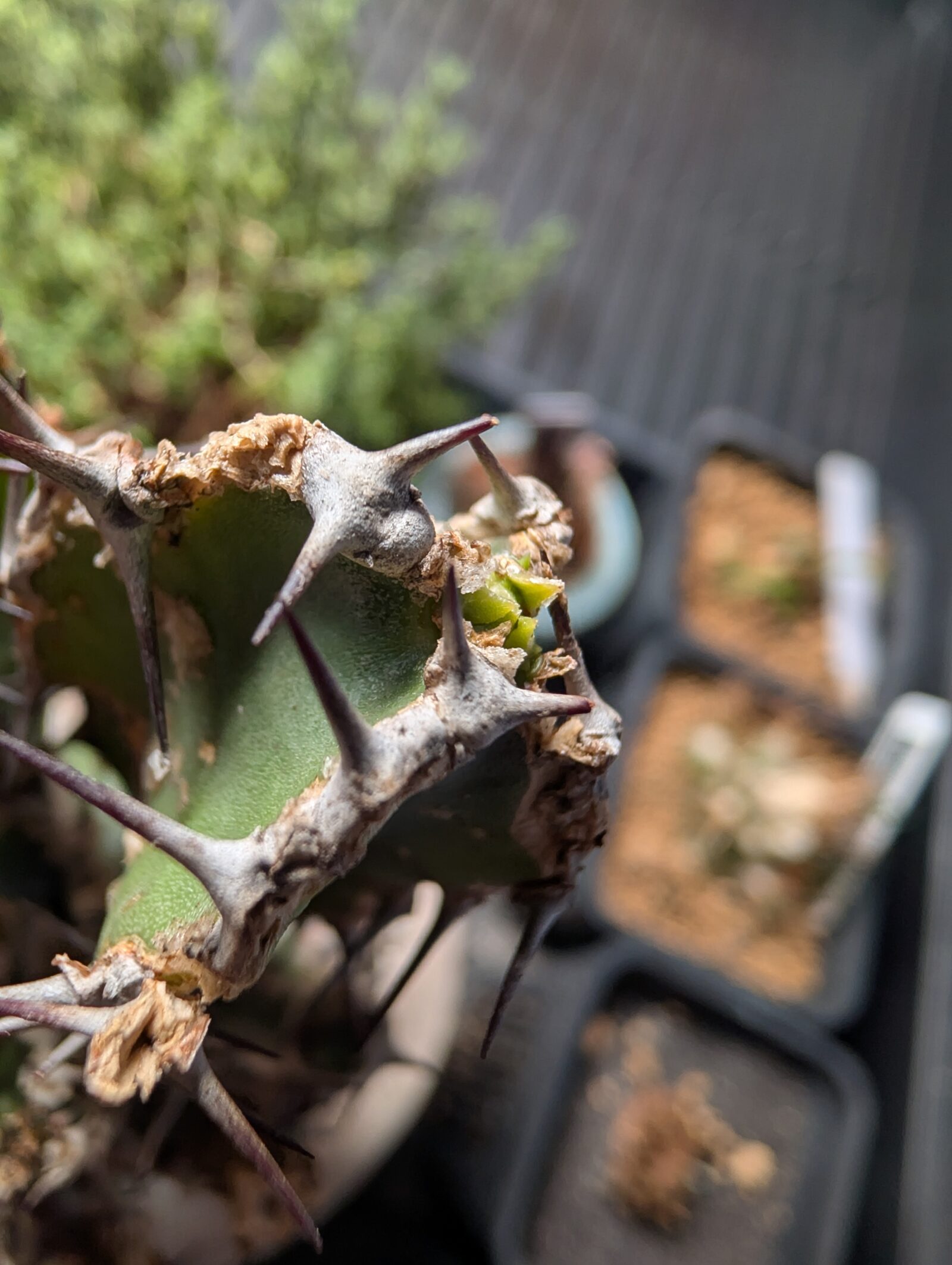 もう一つの株も、元々薄緑の葉っぱが付いていましたが硬く緑緑してきています。