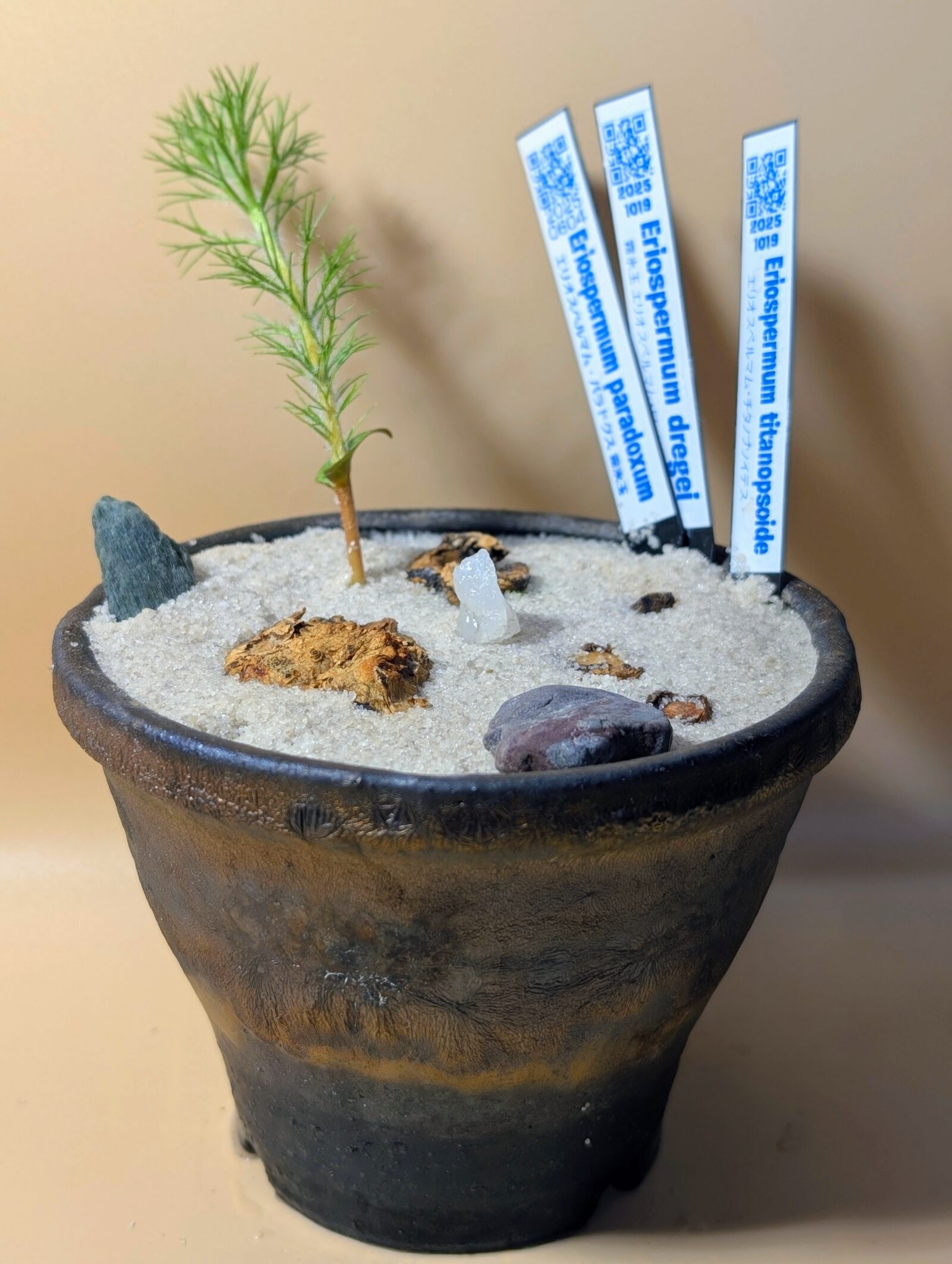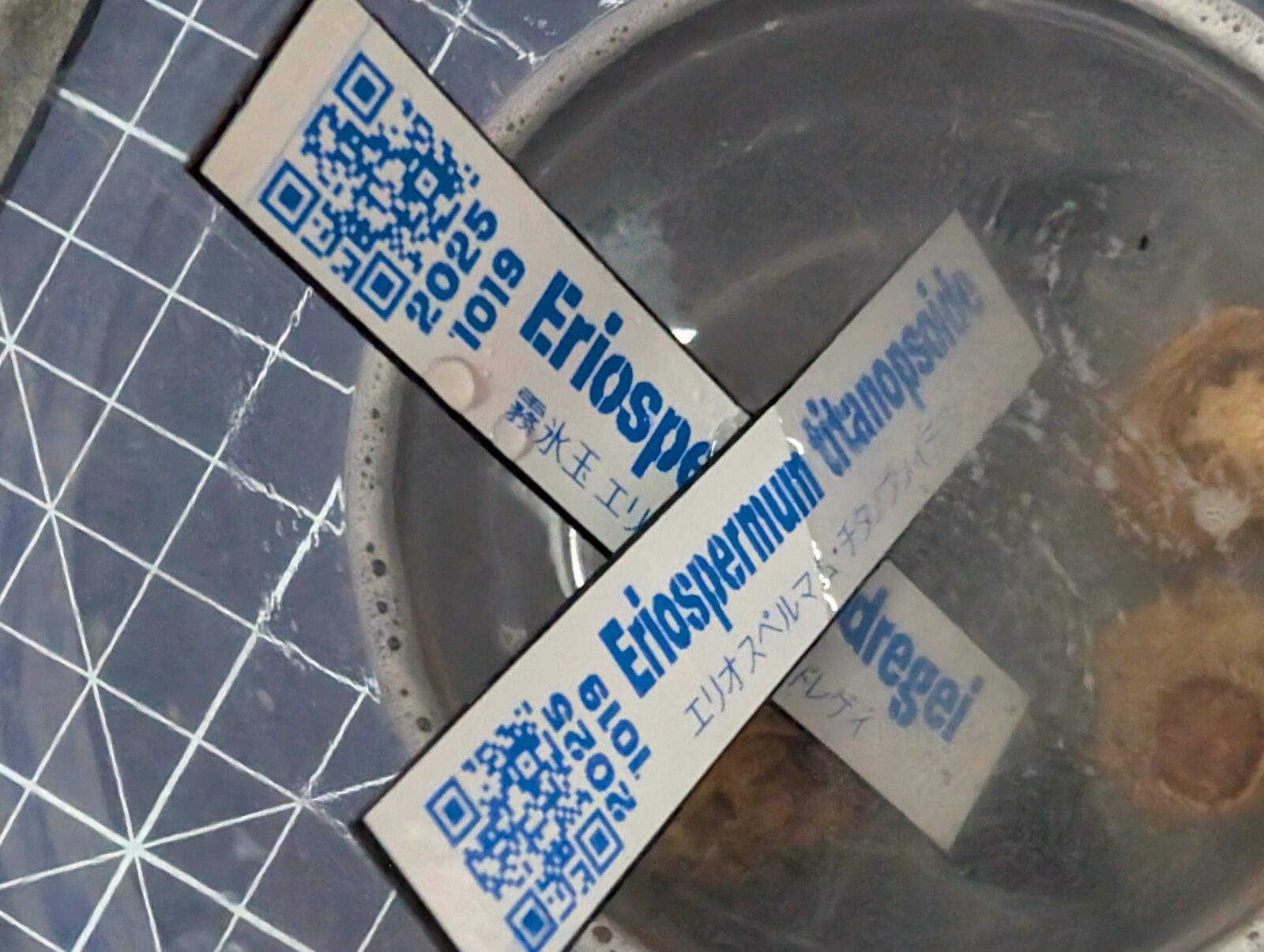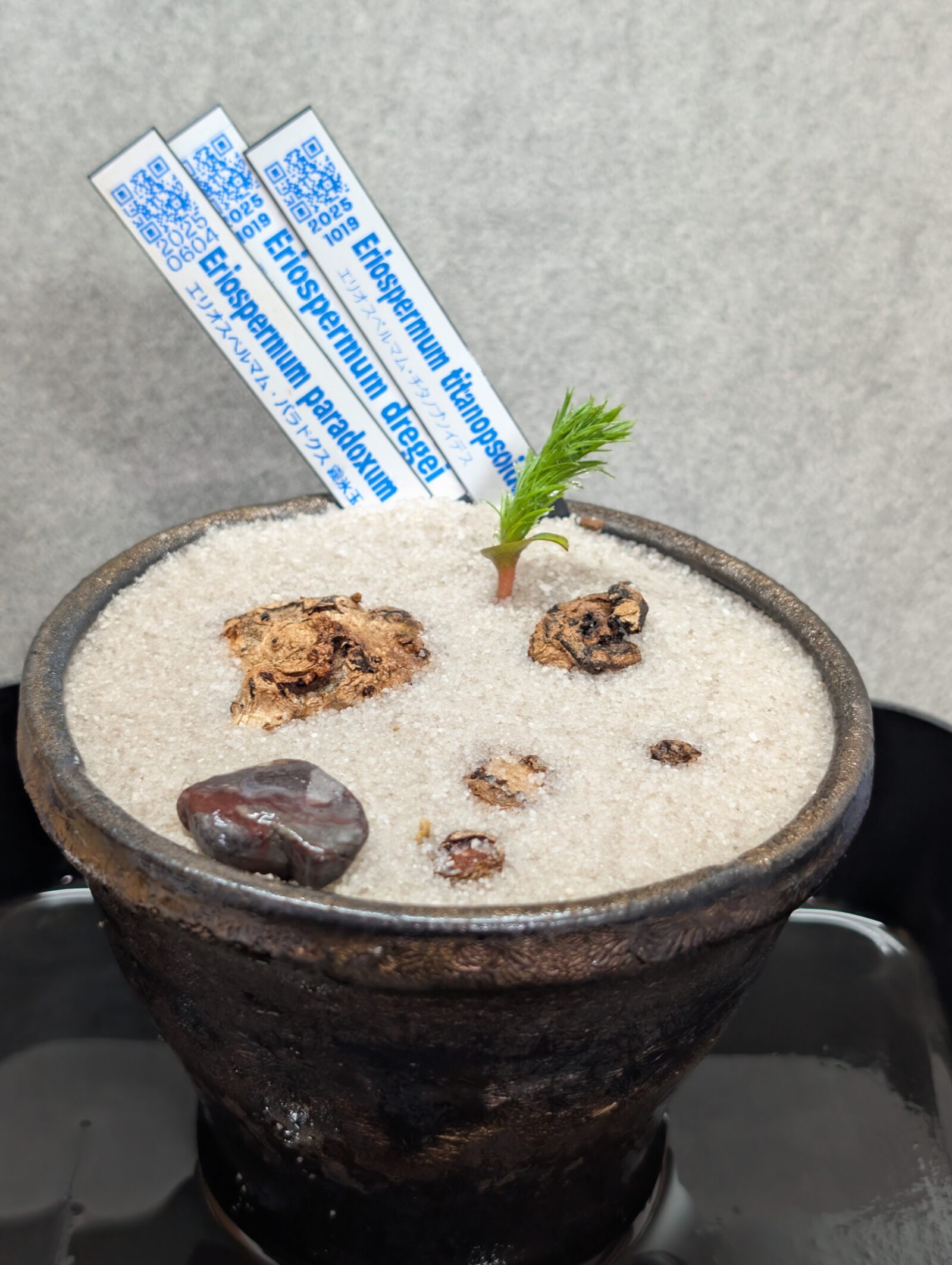 塊根たちが白砂の上からそっと顔を出す、侘びタット風レイアウト完成しました。