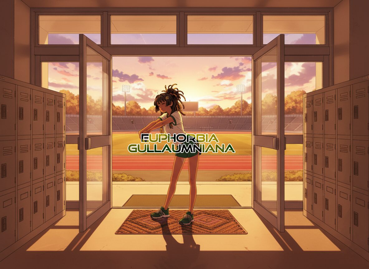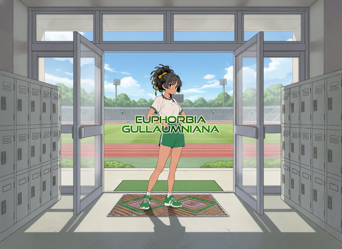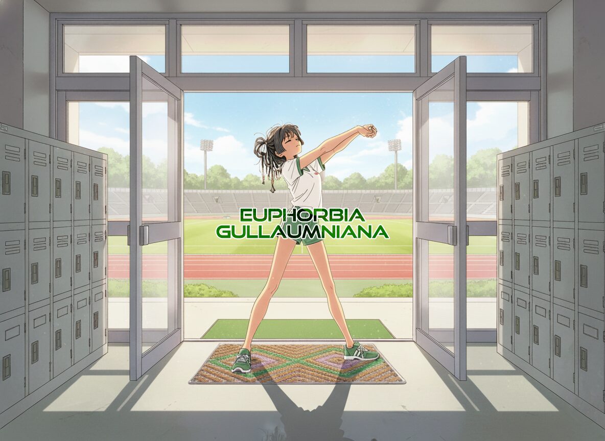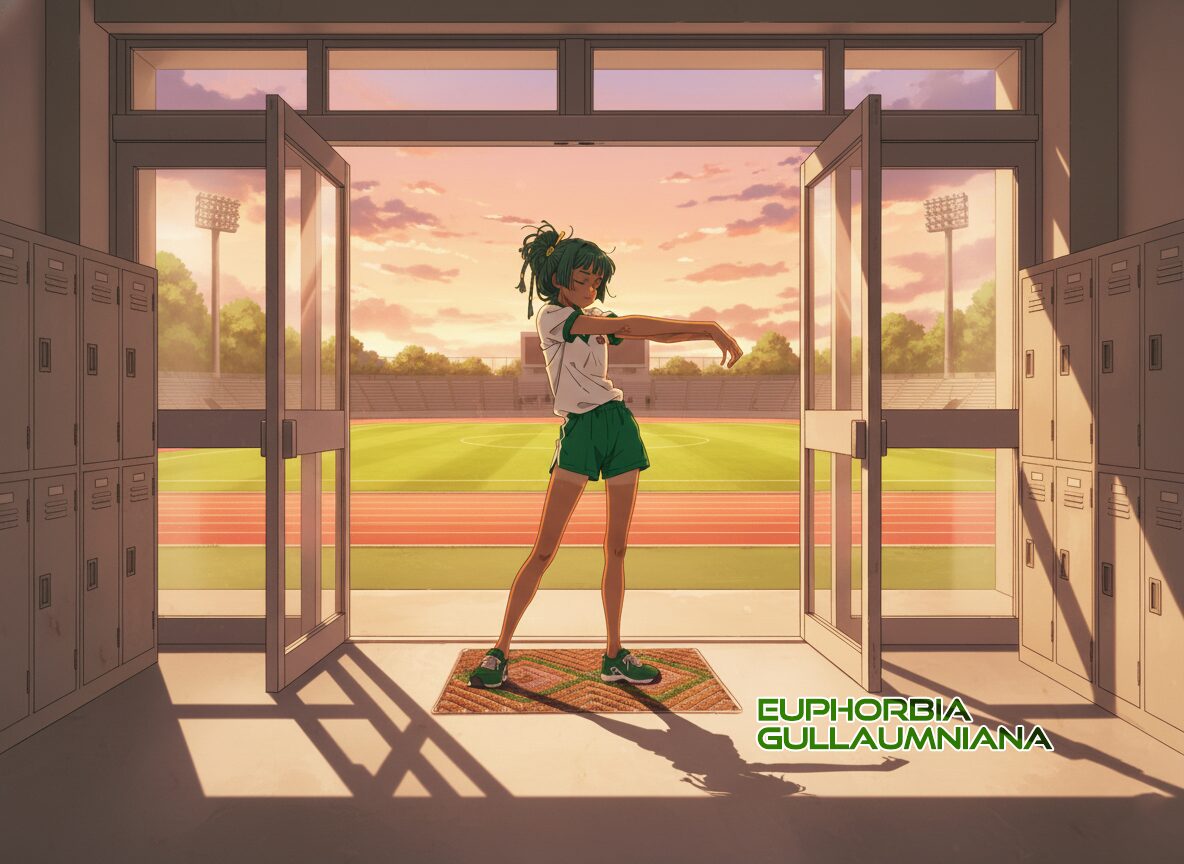 ・直射角度を微妙に逸らし、受熱面積を減らすための“姿勢制御”。枝が少しずつ方位を変えることで、終日ずっと焼かれっぱなしにならない樹形→上から見ると昇降口にあった泥除けマットに見えるので部活で泥を落とす運動部系で表現。
