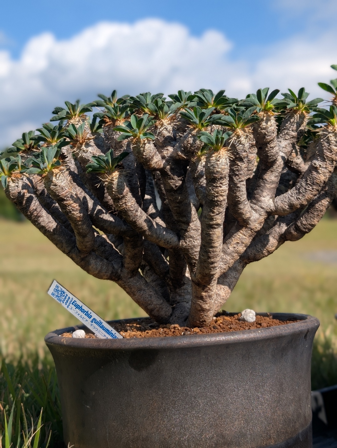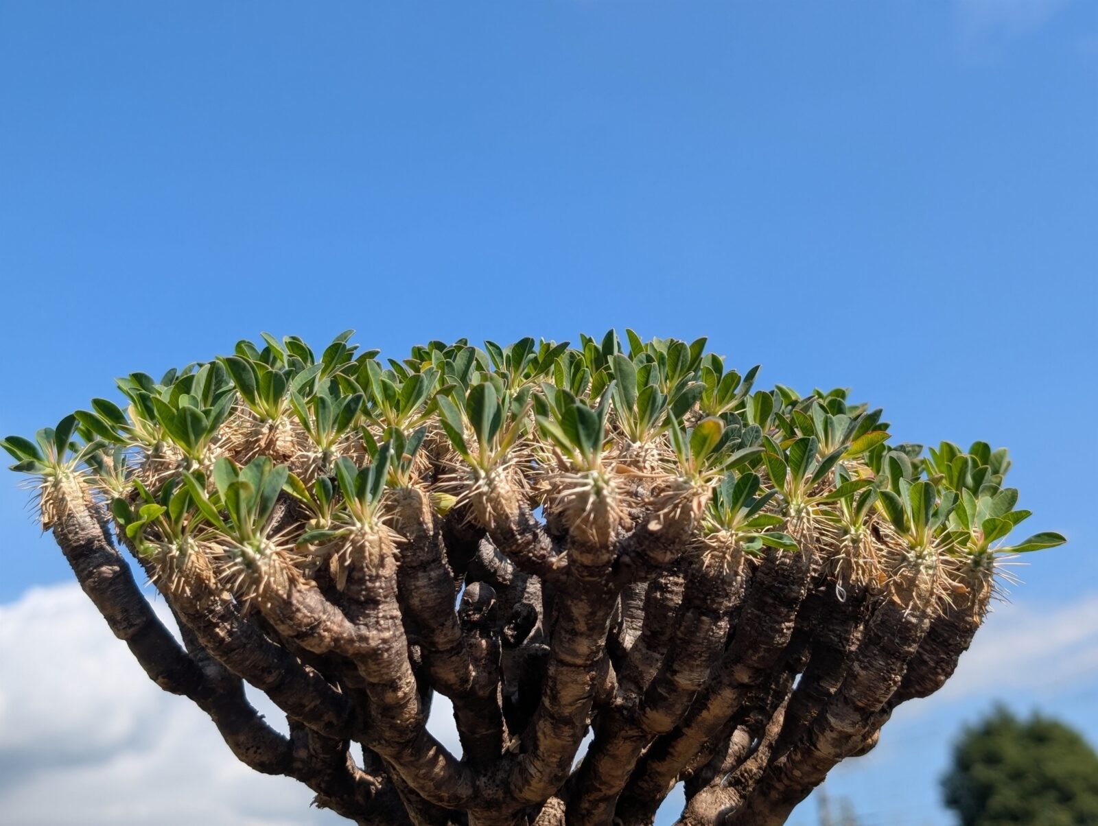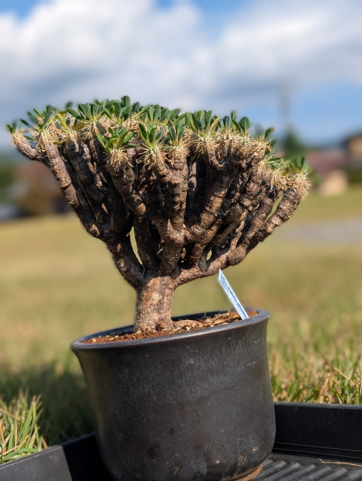 ・マダガスカル南部の岩場・灌木地帯の限定地域、乾燥強めで、標高の低い石灰岩質の大地に自生しているため、枝がコルク質+乾いた表皮状態になっている。→日焼けで表現。