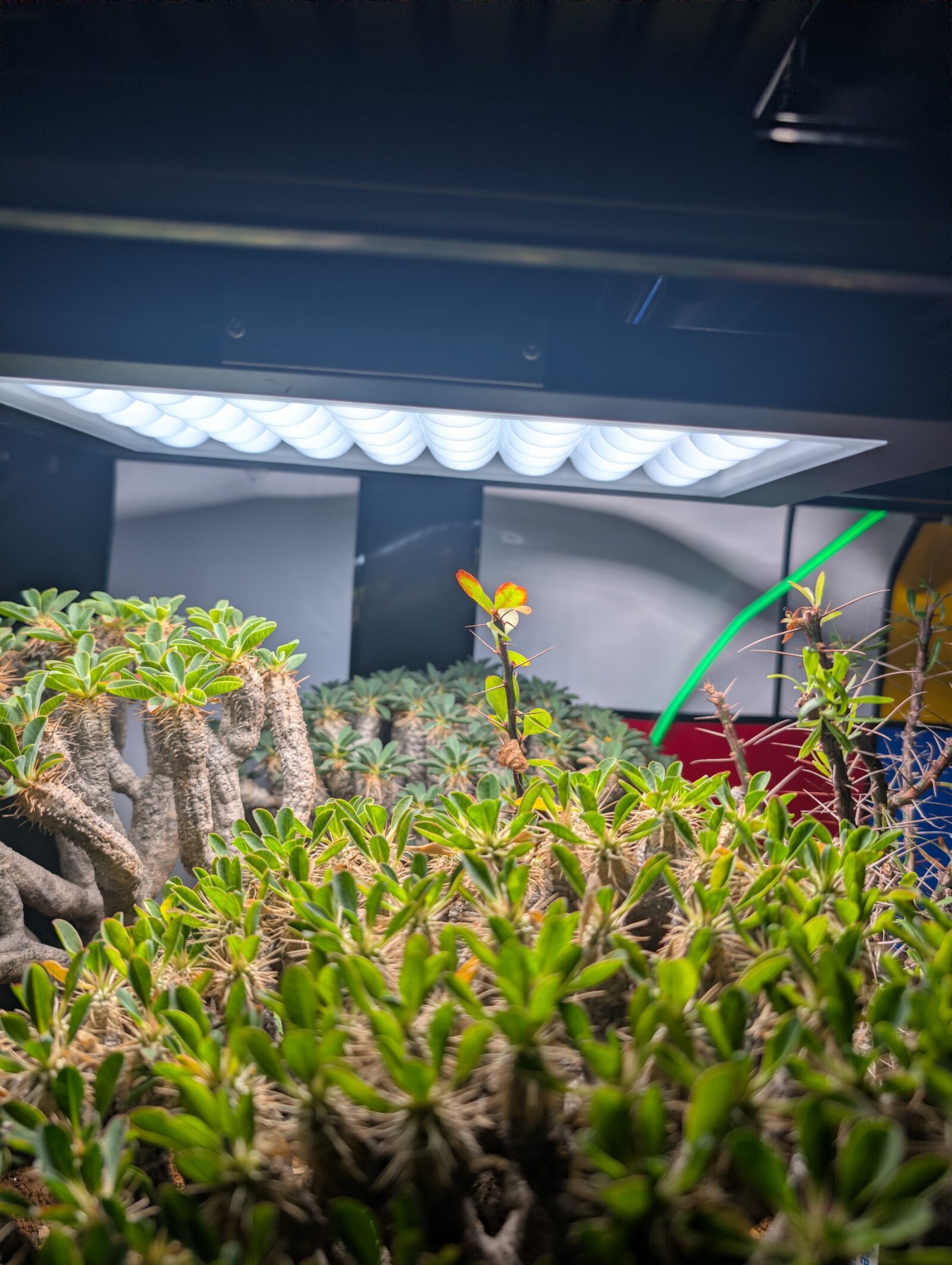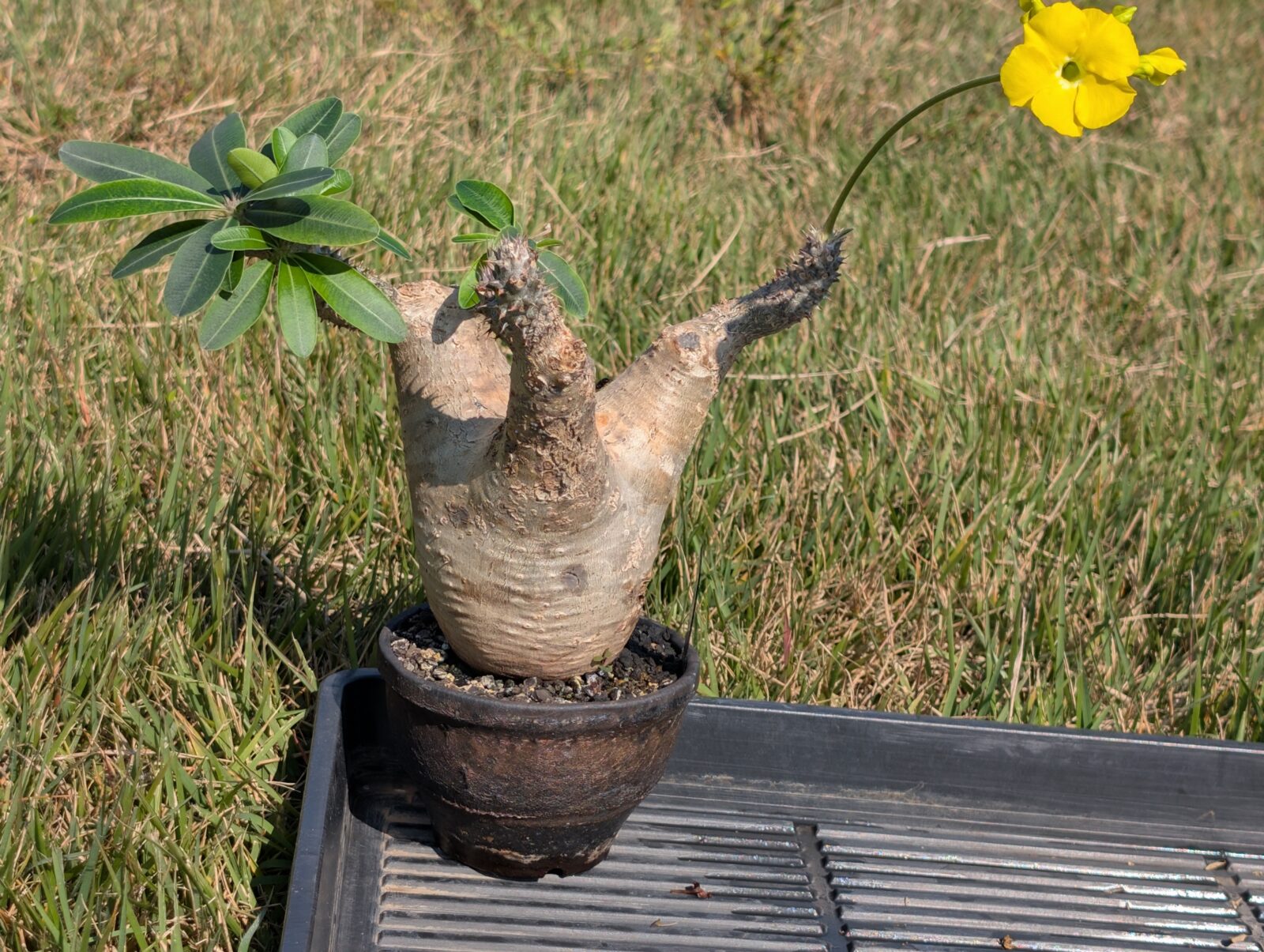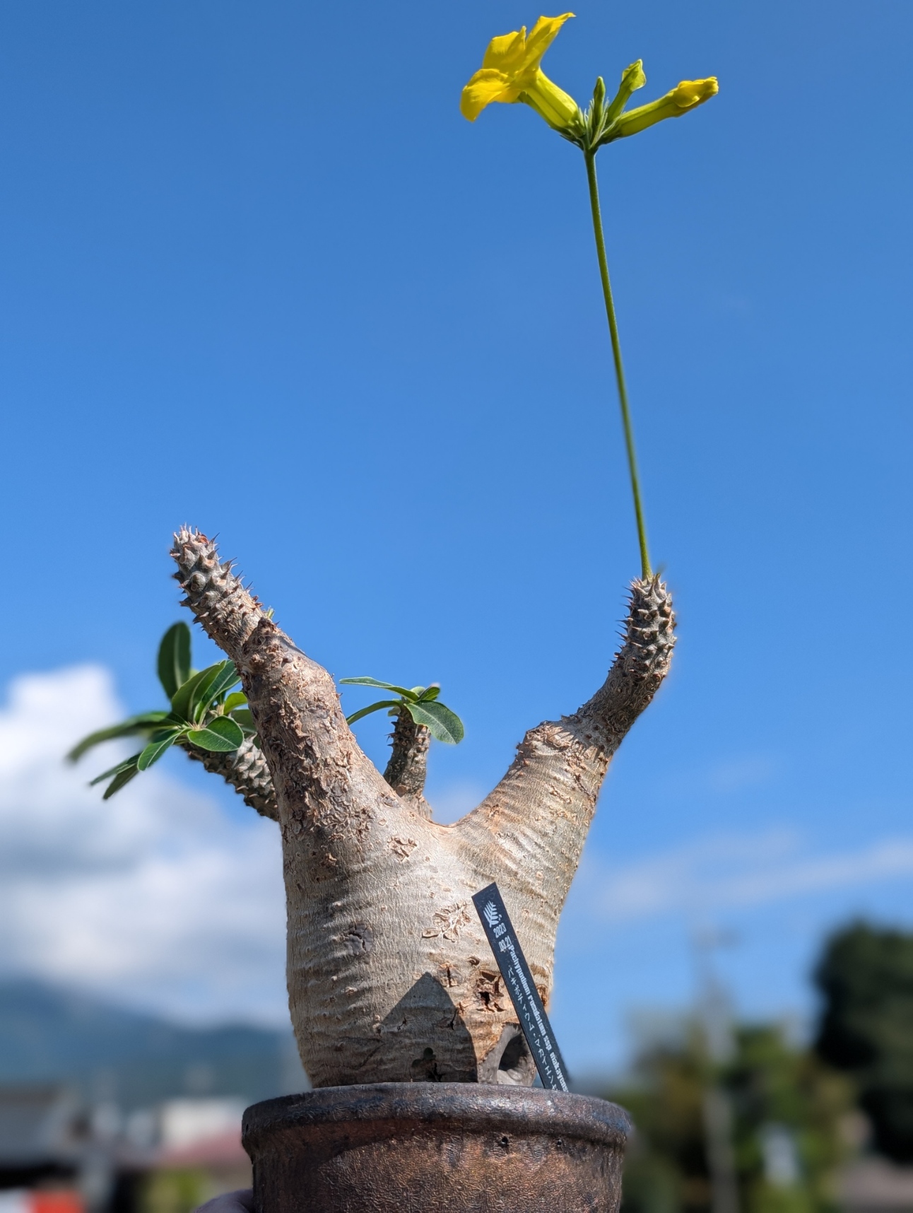 ・マダガスカル南部の岩場・灌木地帯の限定地域、乾燥強めで、標高の低い石灰岩質の大地に自生しているため、枝がコルク質+乾いた表皮状態になっている。→日焼けで表現。