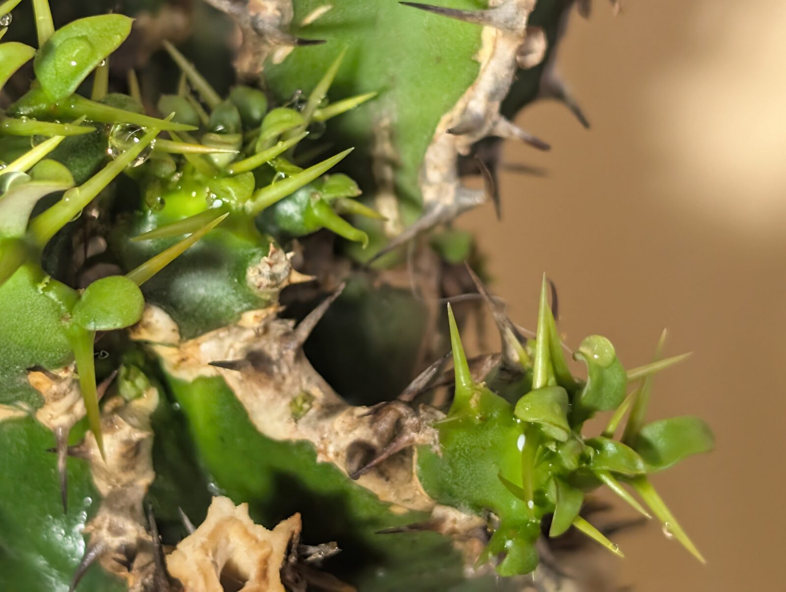 もともと付いていた葉がそのまま硬化 → 緑が深くなってきて、
