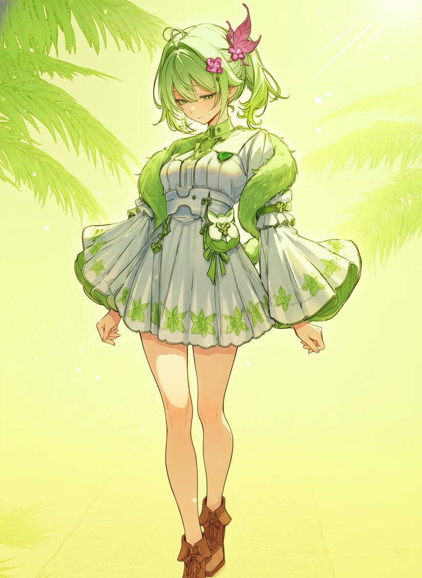 花が特徴的なので頭の髪飾りににも特徴をつけてみました。