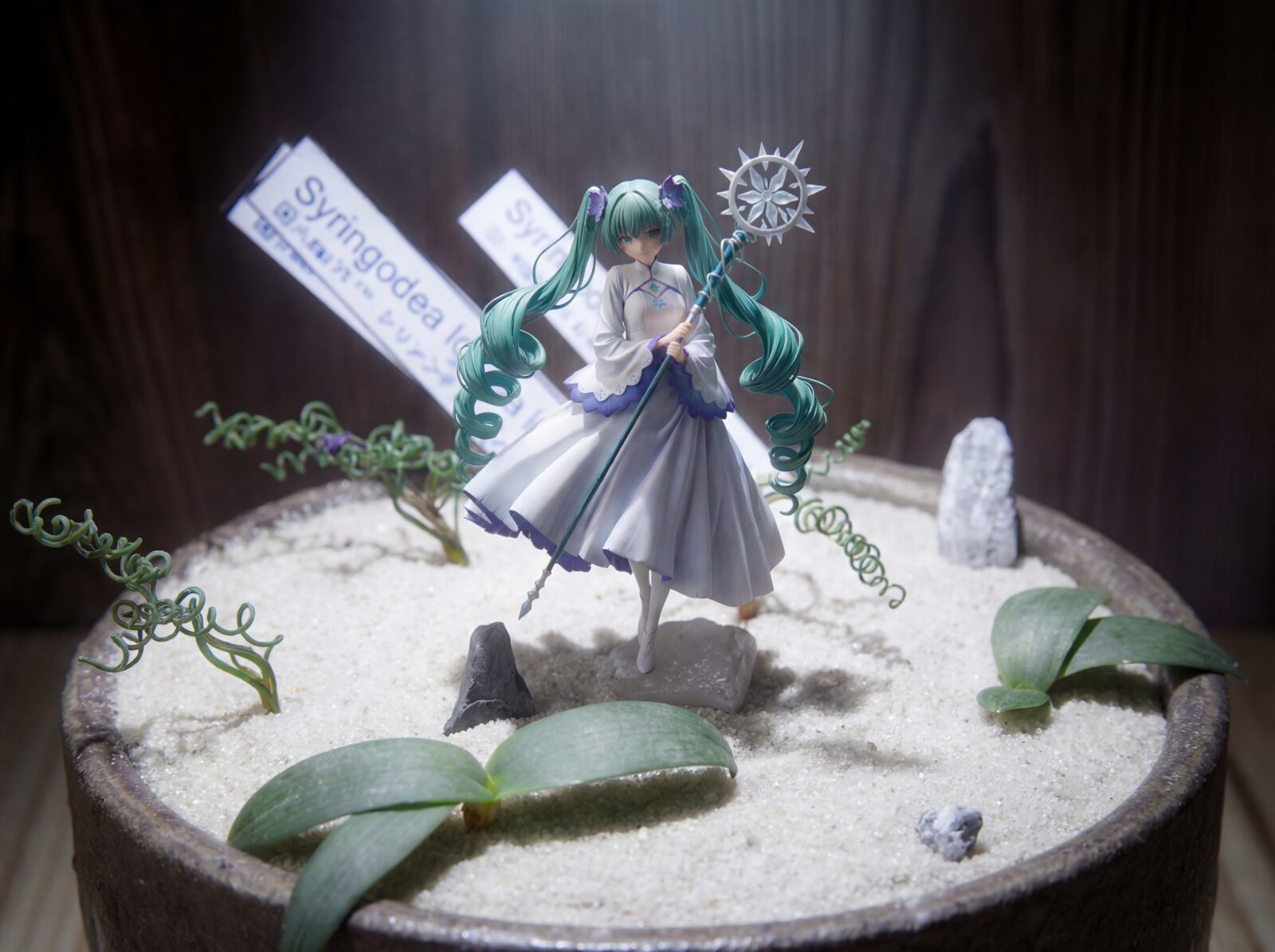 化粧砂を薄く敷き、仕上げに石をちょこんと配置すると…