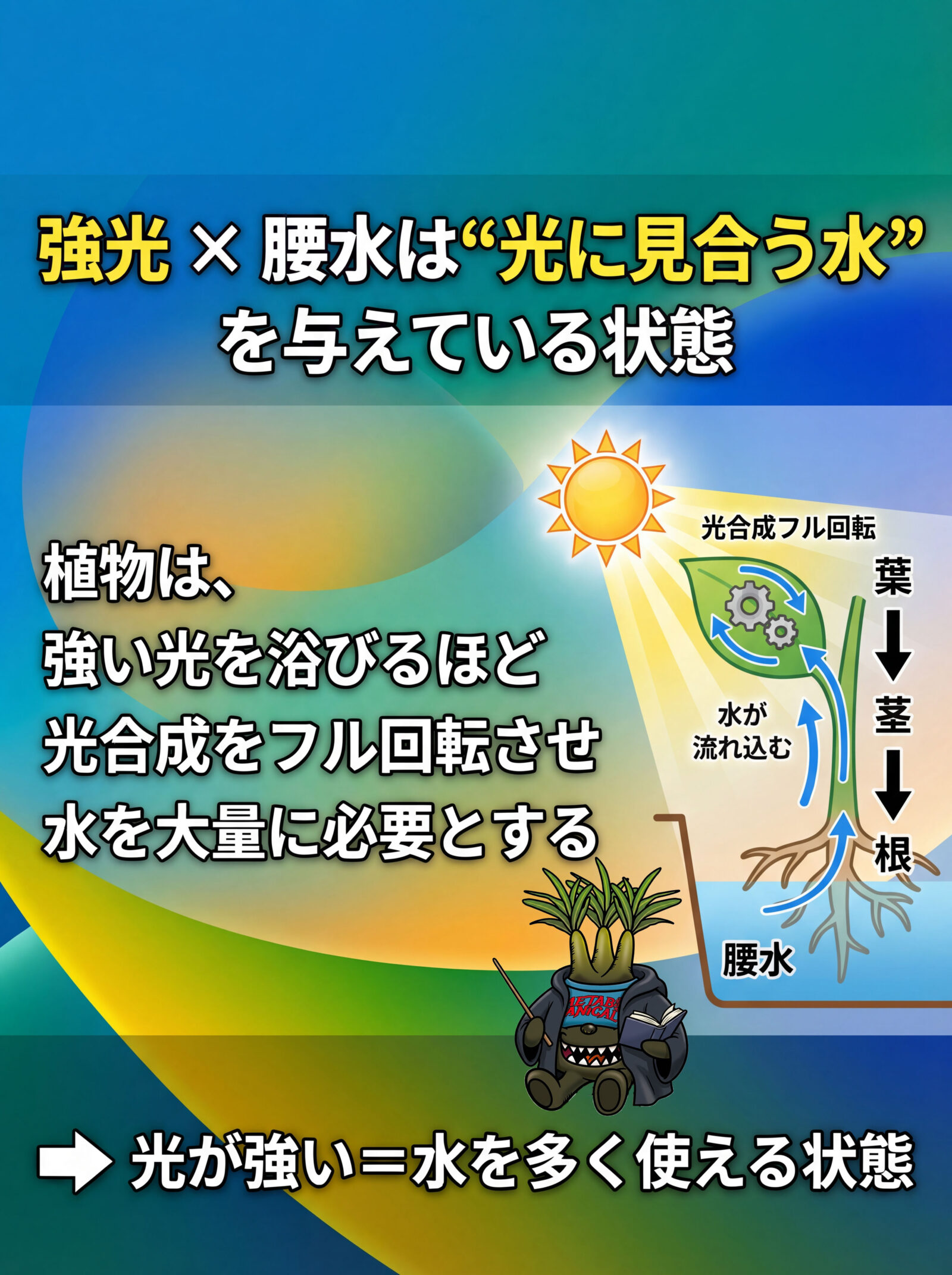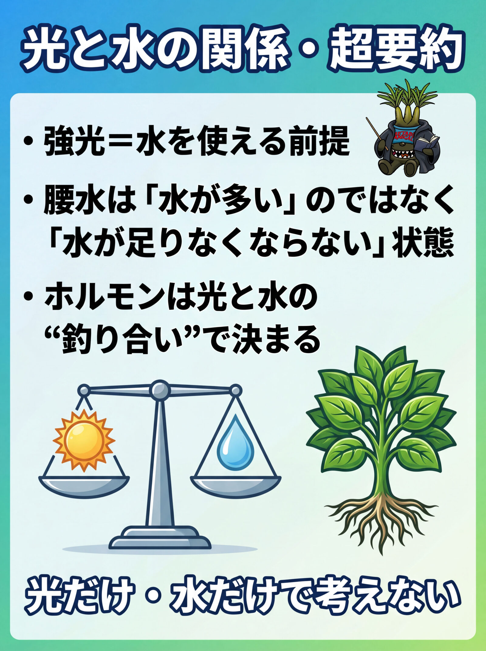 - 光:よく日に当てる(直射〜明るい場所)