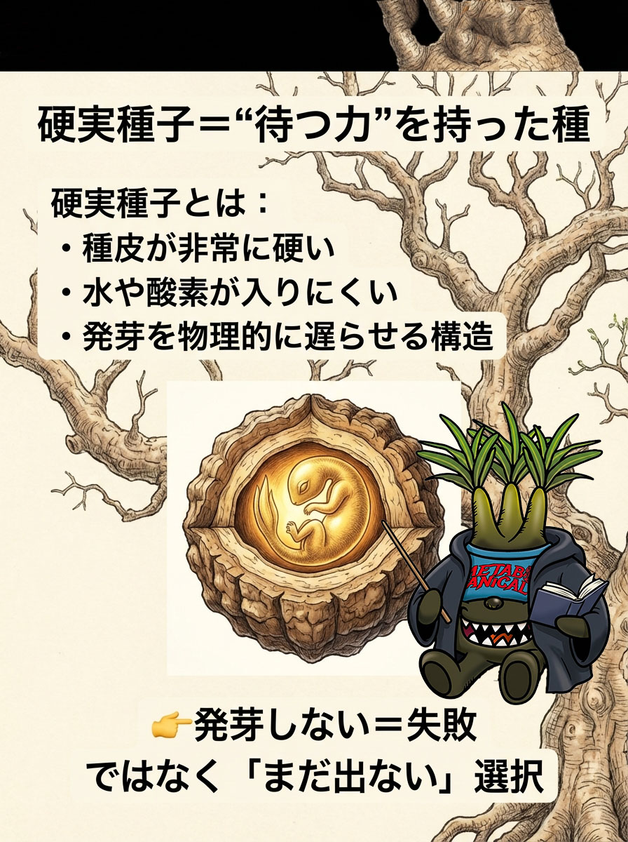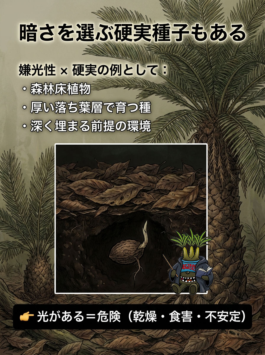 **「秋〜冬の低温湿潤で発芽」**が基本。