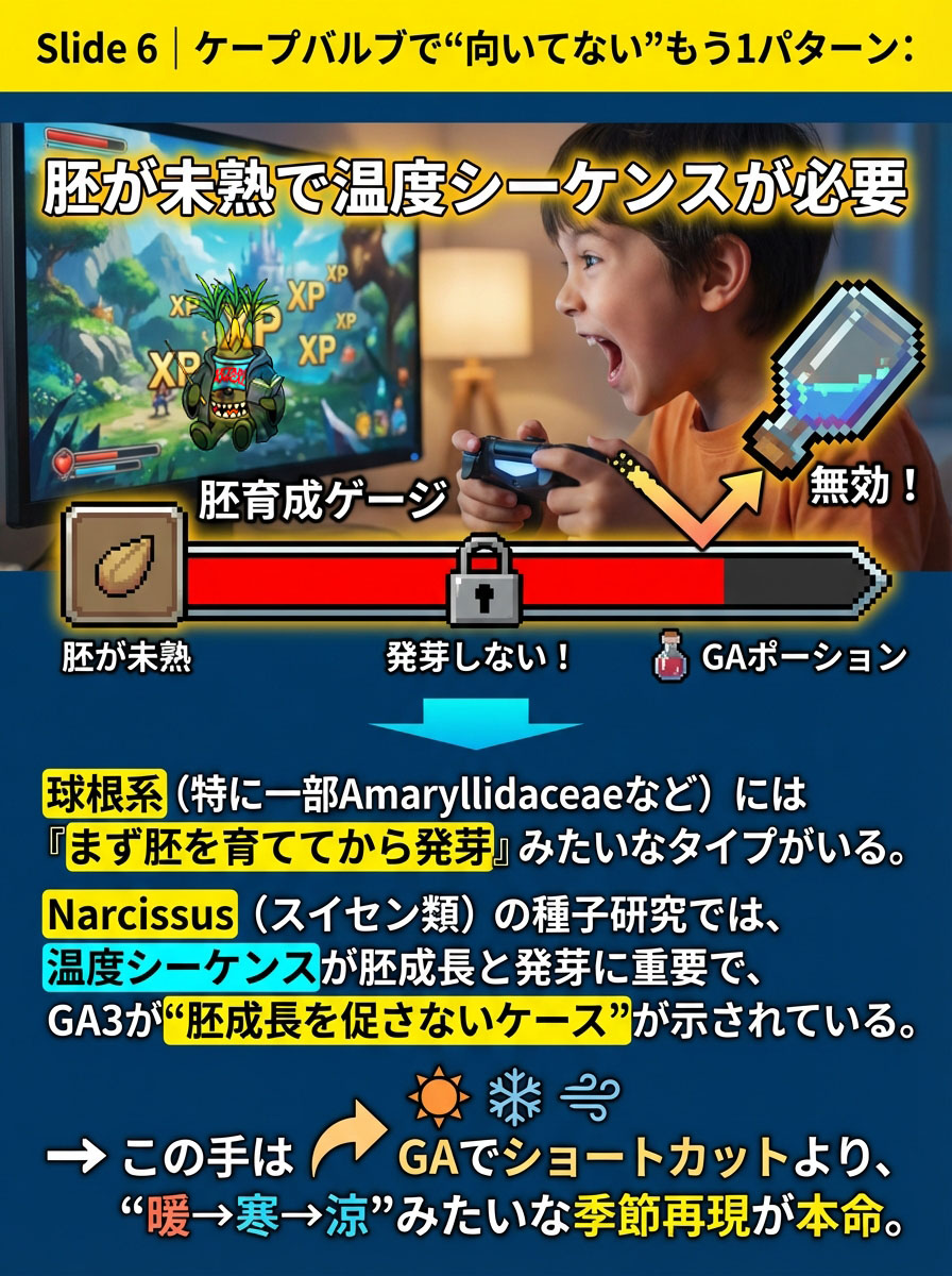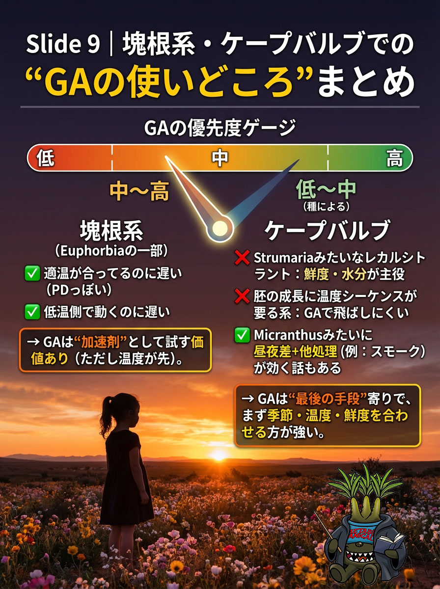 球茎は球茎で、ちゃんと“季節スイッチ”の性格があるので、扱いが“球根っぽい何か”で止まると痛い目を見るやつ。