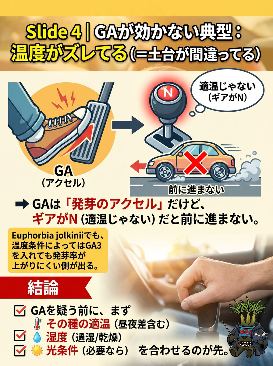 - 生育期サイン:葉が動く/伸びる、新根の気配