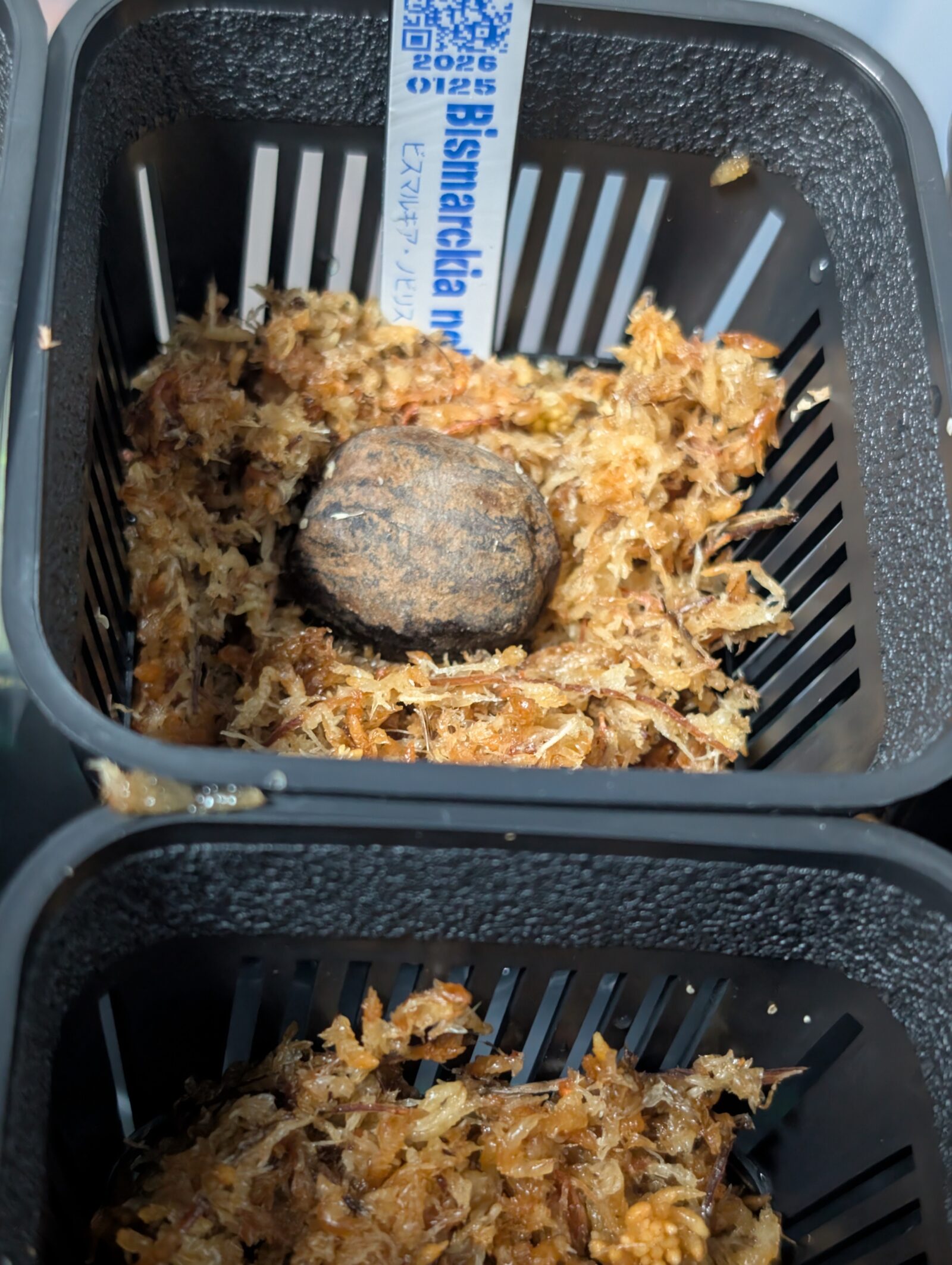 ビスマルキアの発芽は 90–100°F(約32–38℃) が推奨として挙げられ、発芽まで 6〜12か月かかることもある とされています。